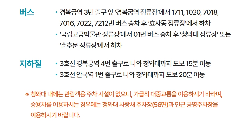 청와대 관람신청 당일예약 및 대중교통 가이드