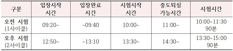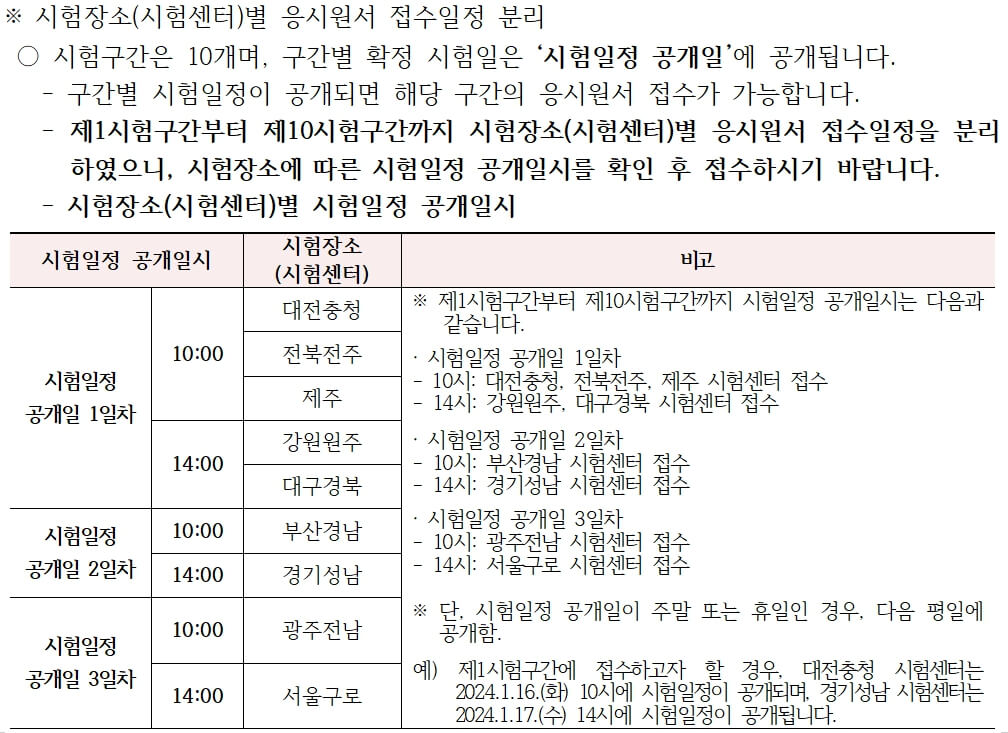 ▼ 2024년 시험일정(응시원서 접수기간), 시험시간 ▼